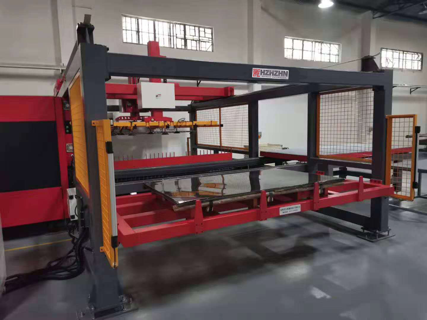 背景技術(shù)激光切割機(jī)是以激光作為一種加工手段對金屬或非金屬板材進(jìn)行切割加 工的裝置,其可在平面板材上加工直線和任意形狀的曲線。為了提升激光切 割的效率和自動化水平,減輕工人的勞動強(qiáng)度,激光切割自動上下料系統(tǒng)應(yīng) 運而生,與激光切割機(jī)相結(jié)合構(gòu)成了激光切割制造單元,廣泛應(yīng)用于電氣制 造、汽車、儀表開關(guān)、紡織機(jī)械、運輸機(jī)械、家電制造、電梯設(shè)備制造、食 品工業(yè)、裝飾裝潢與廣告以及激光加工站等。
